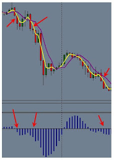 Entry ketika bar merah (untuk sell) atau hijau muncul (untuk buy) dan Keluar ketika jalur utama (garis) melintasi garis nol. Atau kalau sudah cukup target bisa di-sikat duluan...